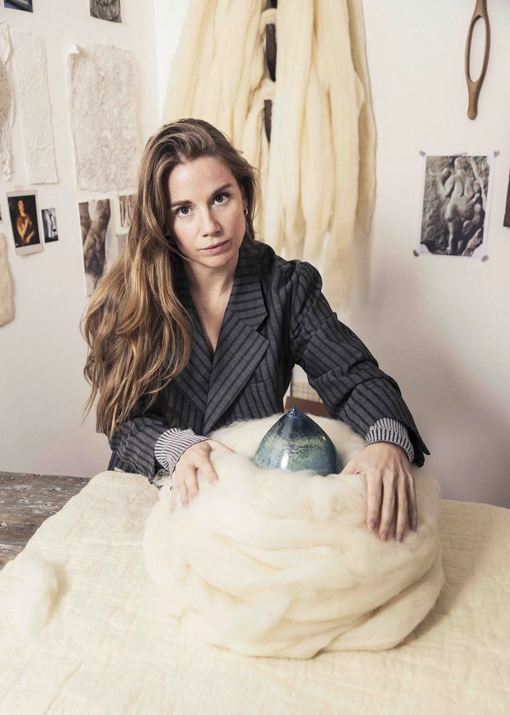 À travers une pratique profondément ancrée dans la matière (verre soufflé, laine, bois ou céramique) Clara Rivault développe une œuvre organique et sensible, où les tensions entre fragilité et résistance donnent naissance à des formes habitées, presque vivantes. Son travail, traversé par des récits intimes et des imaginaires collectifs, interroge la mémoire des matériaux autant que celle des gestes.