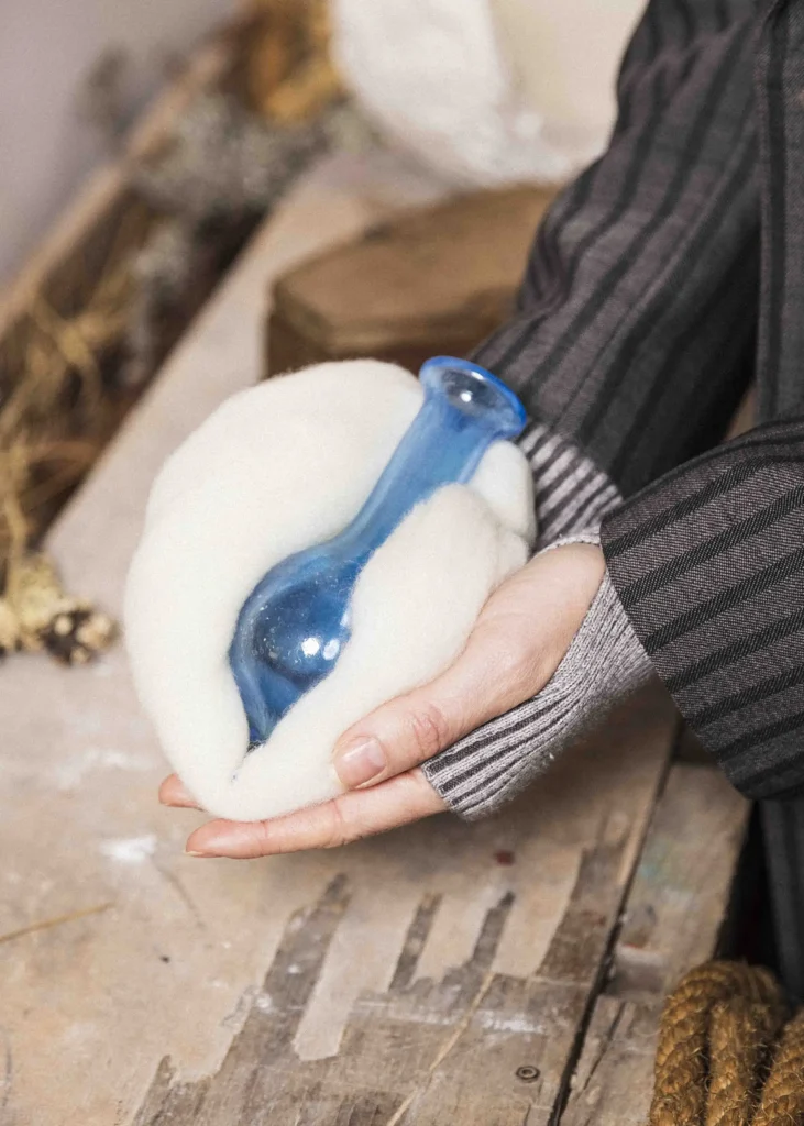 Son projet actuel marque une étape décisive dans sa recherche. Invitée par Origines Art et Collection à rejoindre le Siroua Wool Project au Maroc, l’artiste entreprend un retour à la source, au plus près des matières premières et des communautés qui les façonnent. Entre immersion dans la vallée du Siroua, résidence de recherche à Marrakech à la maison Denise Masson ( Institut Français) et future phase de production autour du verre, cette démarche s’inscrit dans un temps long, fait de rencontres, d’expérimentations et d’écoute.